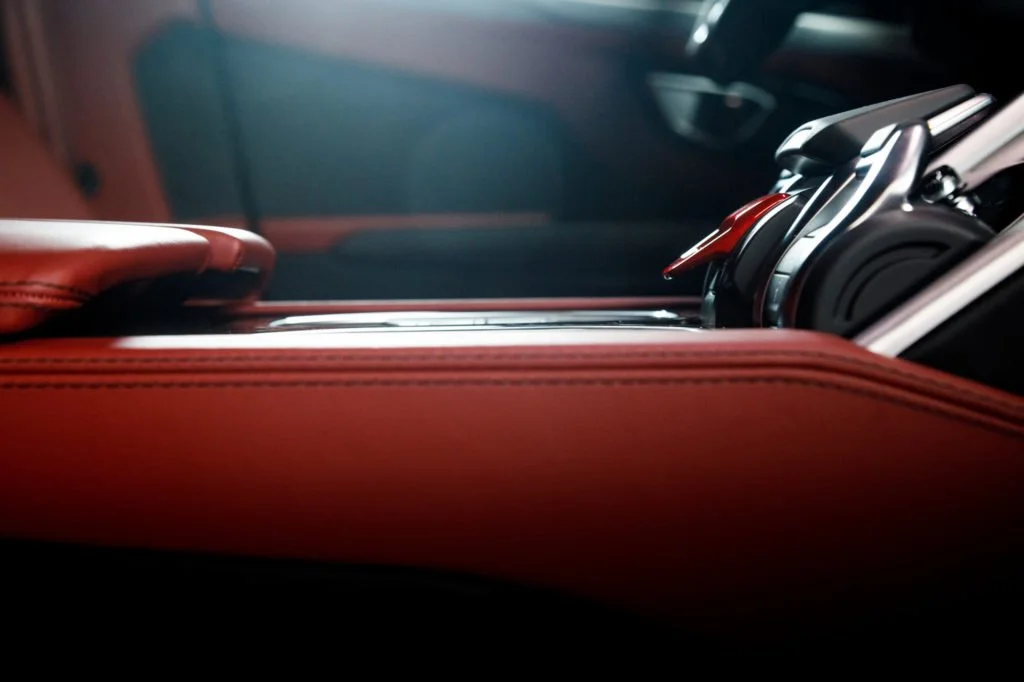 Of course, that is offset by the cherry red interior. The space feels special with the stitched leather, futuristic controls and other details.
